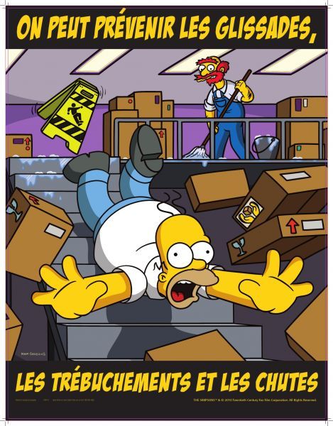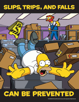 Slips Trips and Falls safety awareness poster featuring the characters from The Simpsons